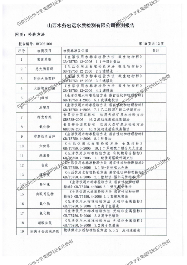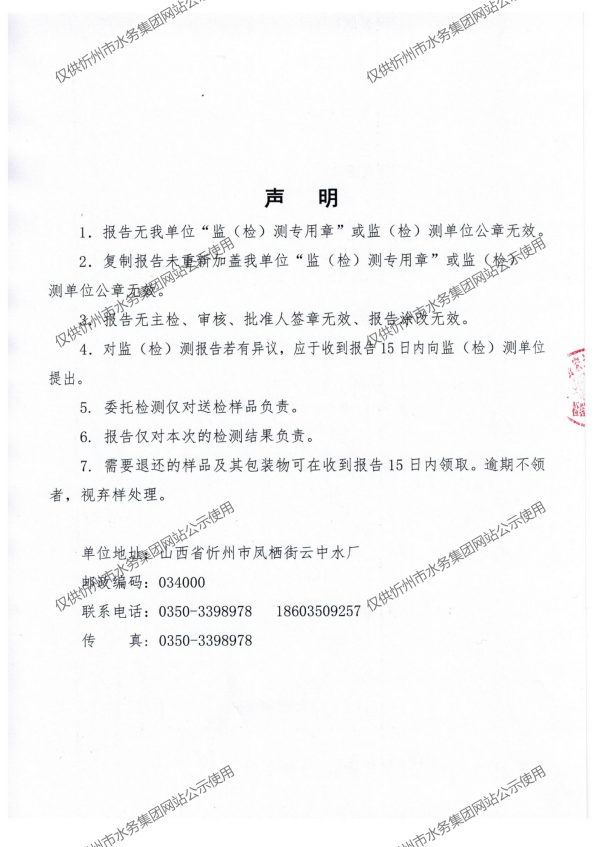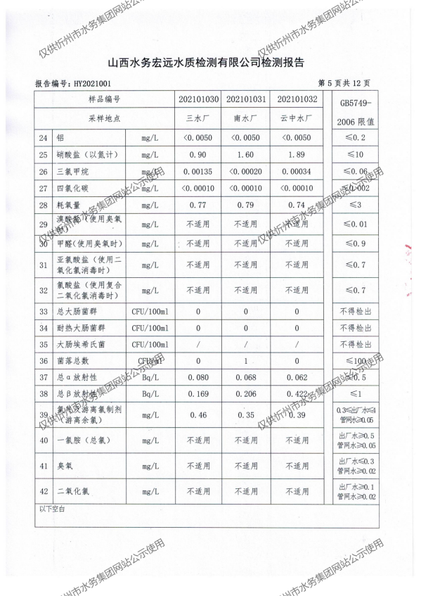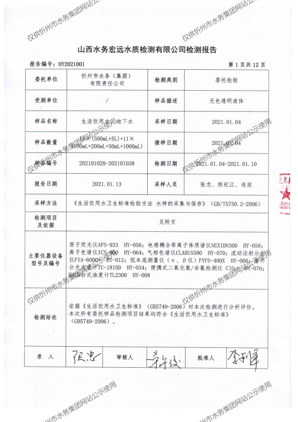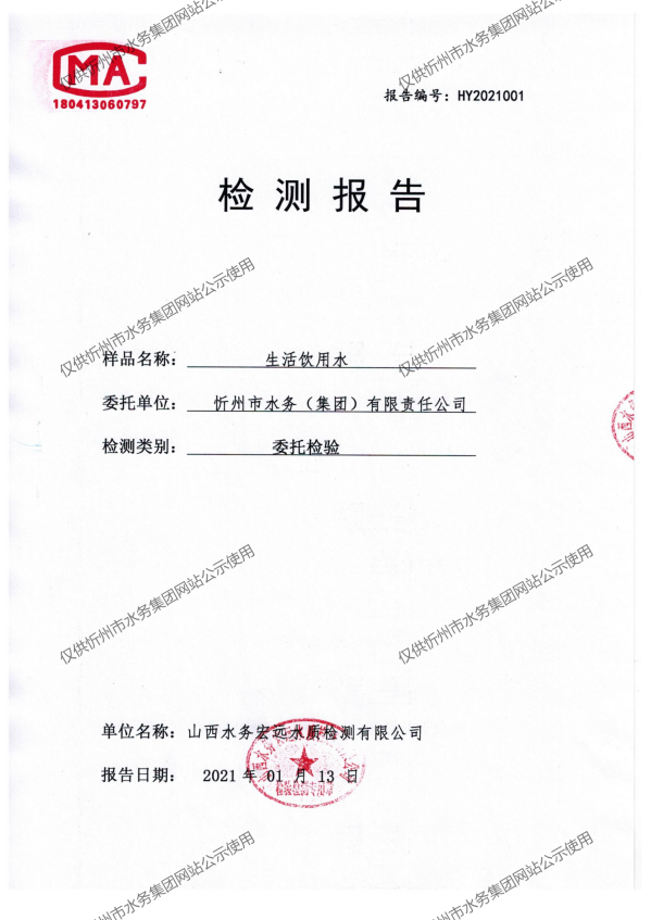 忻州城區(qū)公共供水水源水、出廠水、管網(wǎng)水、管網(wǎng)末梢水2021年1月份水質信息公示